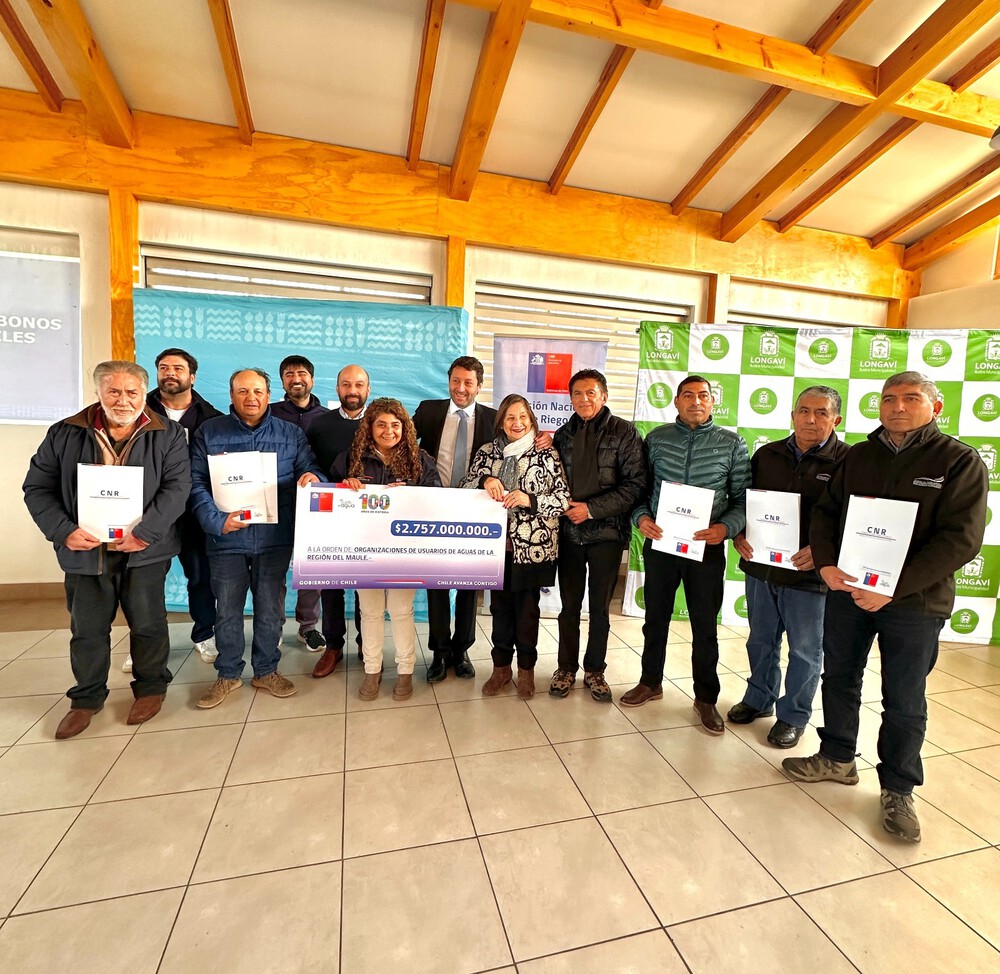Longaví, lunes 7 de julio 2025.- Con el apoyo de la Comisión Nacional de Riego (CNR), del Ministerio de Agriculrura, diversas organizaciones de usuarios de agua de la Región del Maule podrán  avanzar en la construcción de un total de 26 proyectos de revestimiento de canales, obras que -con bonificaciones que superan los $2.700 millones- les permitirán a las y los agricultores hacer un uso más eficiente del agua y, con ello, impulsar a la agricultura local.