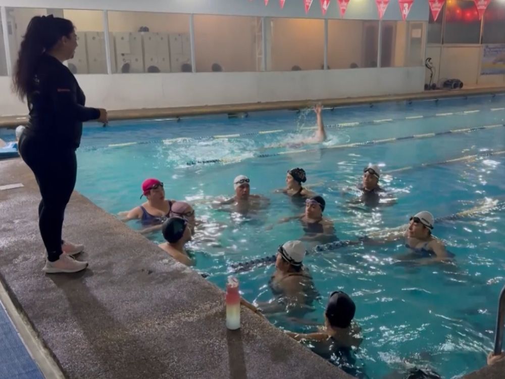 Se trata de un taller diseñado para atender las necesidades de aprendizaje en natación de 25 personas y para lo cual tiene clases a las 9 de la mañana los días martes, jueves y sábado. Se suman a ellos los martes y jueves a las 19.00 horas el grupo avanzado.