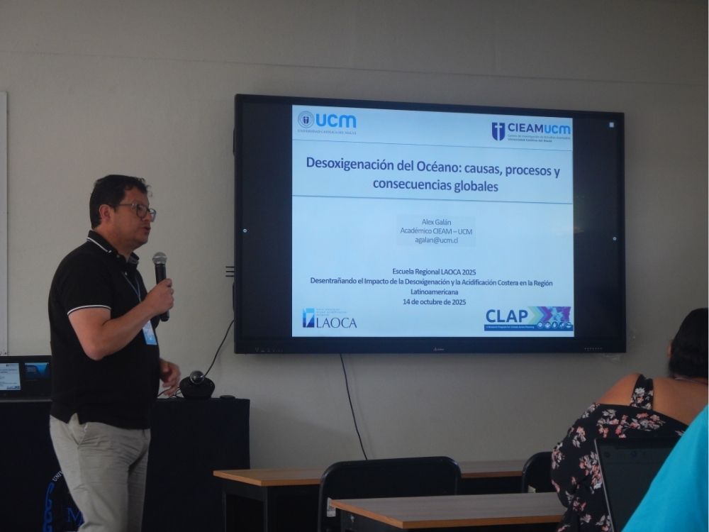 El investigador del Centro de Investigación de Estudios Avanzados del Maule (CIEAM) de la UCM, Dr. Alexander Galán, alerta sobre el avance de la desoxigenación y la acidificación del océano, fenómenos exacerbados por el aumento de CO₂ en la atmósfera y que amenazan directamente la pesca artesanal y la acuicultura. El académico acaba de participar como instructor en la Escuela Regional LAOCA 2025 en México, donde formó a jóvenes científicos latinoamericanos en el estudio de estos procesos.